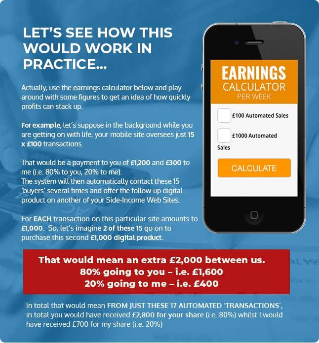 - And as the owner of your own Ready-Made Side-Income Digital Business which I will set-up and give to you so you can begin earning between £80-£800 SEVERAL TIMES A DAY in extra money quickly..