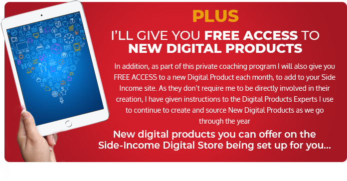 Now I am genuinely happy to offer to do all this for you, it really isn’t a problem. But of course, I will need to try to cover the costs of my team and their time in order to do so. So, if you would like me to do this for you each month to make sure you succeed and keep you focussed…To keep you on track to the kind of profits I’ve been talking to you about … to enable you to COPY what I do more directly… And to give you FREE ACCESS to newly created and sourced Digital Products…